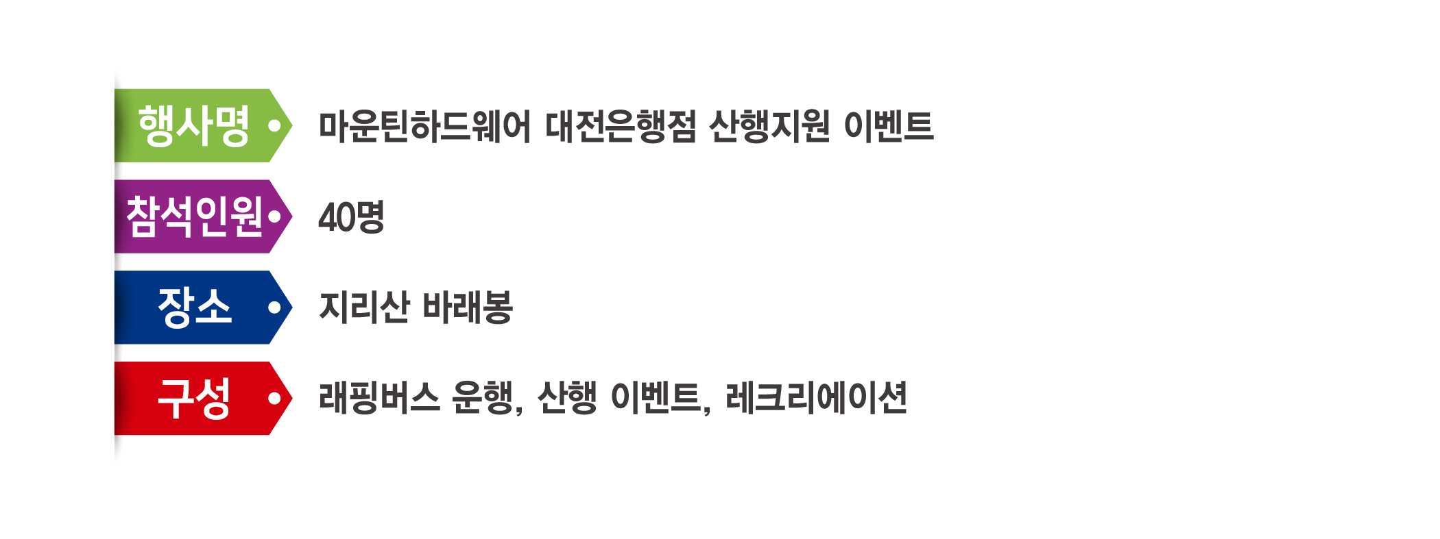 | 제목 | 마운틴하드웨어 대전은행점 산행지원 이벤트 |