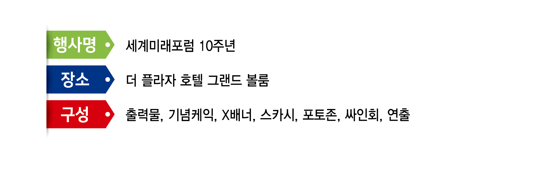 | 제목 | 세계미래포럼 10주년 [더 플라자 호텔 그랜드 볼룸] |